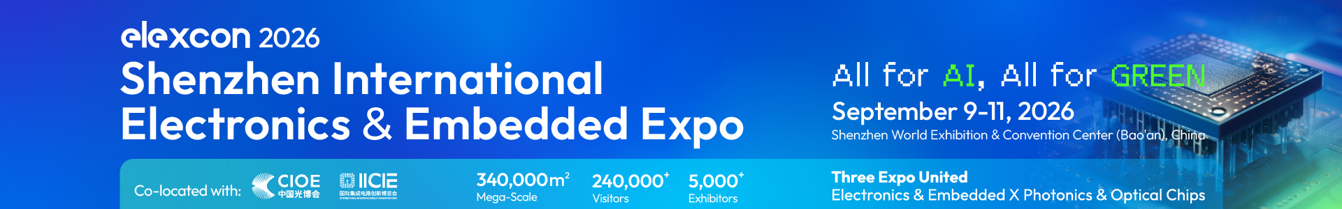 elexcon将于2026年8月25至27日在深圳会展中心举办elexcon2026第二十三届深圳国际电子展暨嵌入式展,链接行业顶级资源,全面呈现AI终端创新技术新品及方案。
