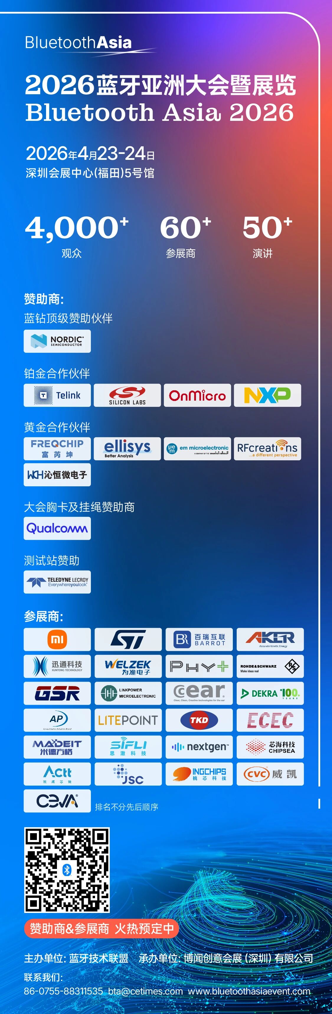 不可错过的全球蓝牙生态伙伴聚会,加入 Bluetooth Asia 2026,您将获得: